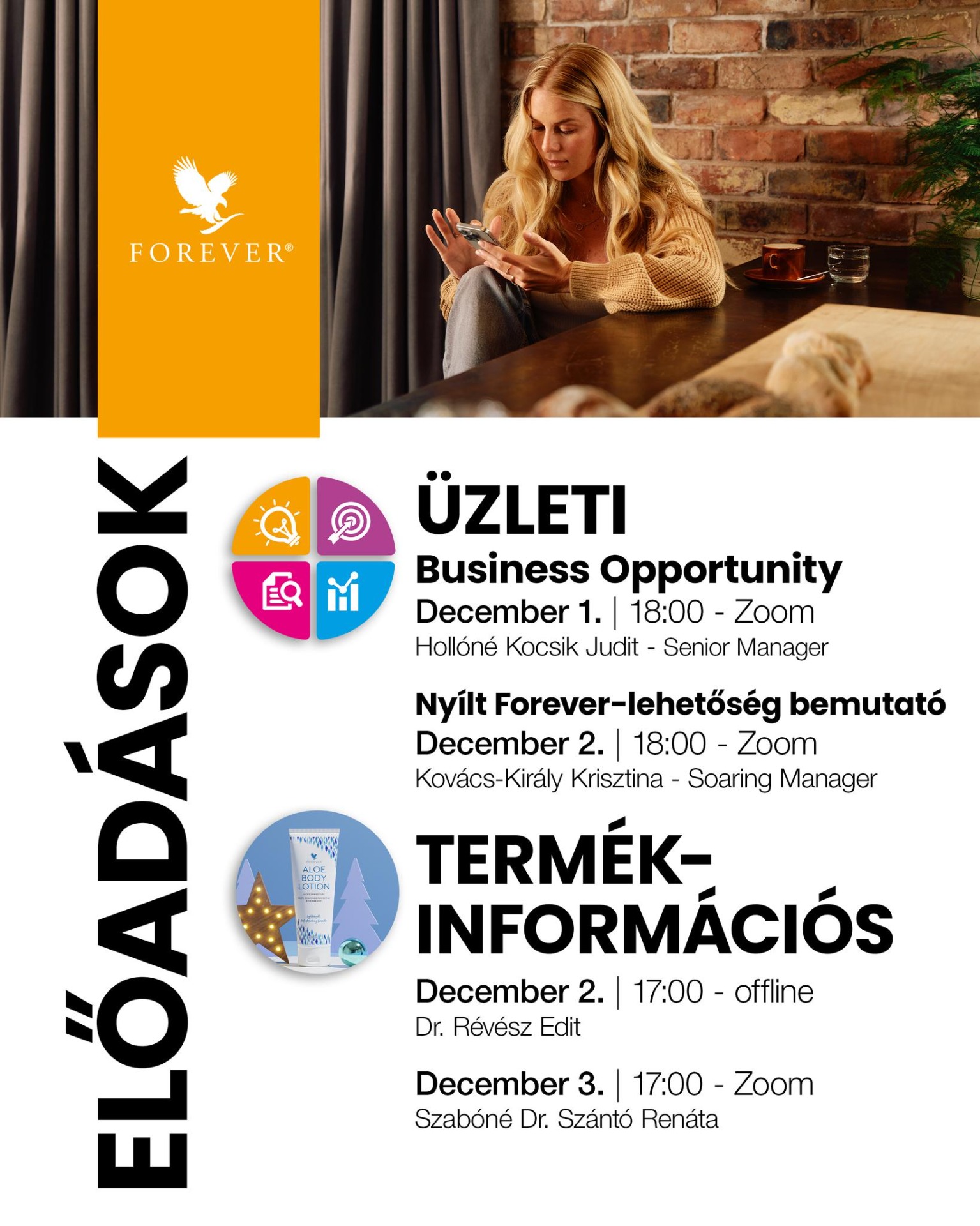 Most rajtad a sor, hogy meghatározd céljaidat, mi pedig segítünk, hogy valóra váltsd őket! Bárhol is tartasz Forever-utadon, a decemberi online üzleti előadásaink Neked szólnak! Let's Grow – növekedjünk együtt!